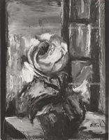 Pichet de fleurs devant la fenêtre ouverte 906 -