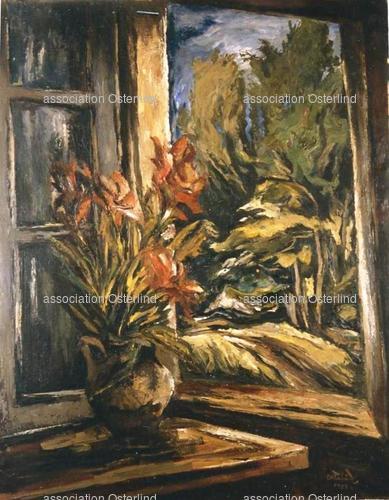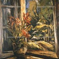 - Pichet de fleurs devant la fenêtre ouverte