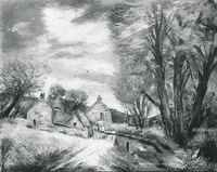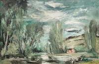 Paysage à la rivière et à la chaumière rouge 623 -