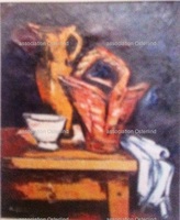 Cruche et panier fond bleu ou Nature morte aux paniers 637 -
