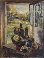 Champignons d'automne ou Panier aux champignons et porte ouverte sur la campagne 467 -