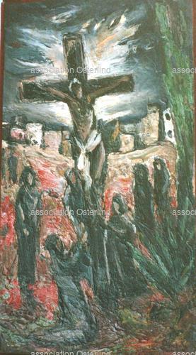 1939-1949, des années de tourmente : l’occupation, la mort de son fils Nanic, aquarelliste, l’arrivée de la nouvelle peinture bouleversent l’artiste. Ses œuvres se durcissent, et prennent souvent un caractère tragique : paysages neigeux du Cantal ; toiles d’Île-de-France et de Bretagne éclaboussées de jaune de chrome, bleu outremer, carmin ; natures mortes chahutées. Et surtout, fait inattendu, Osterlind entame une production d'œuvres religieuses, notamment de sombres descentes de croix aux cieux rougeoyants.